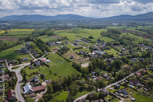 Miedzyrzecze Gorne village in Silesia region of Poland, drone aerial photo