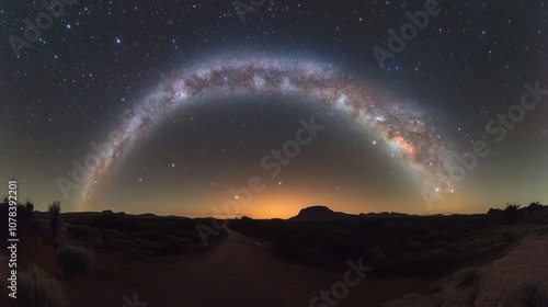 Milky Way arching gracefully over the night horizon, filled with bright stars and distant galaxies shining in the dark sky."