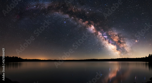 Milky Way Galaxy Over Calm Lake at Night Reflection