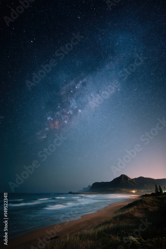 astronomy, exploration, adventure, calmness, tour tourism, vacation, nature, travel, discovery, universe, cosmos, galaxy, night, landscape, coast, shoreline, darkness, scenic, horizon, sky, space, aethereal, celestial, wonder, spirituality, dream, future, ai, technology, innovation, new, trend, environment, sustainability, conservation, ecology, planet, mountain, wave, sand, grass, light, star, sea, ocean, beach, dune, nightscape