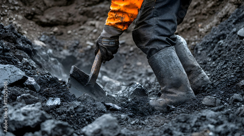 miner, coal, mining, shovel, industry, work, pit, dark, extraction, labor, energy, men at work, excavation, man, occupation, job, safety, equipment, hard, heavy, dirt, ground, black, boot, glove, uniform, resource, power, fuel, environment, earth, quarry, rock, stone, dust, hand, toil, manual, production, depth, shadow, landscape, scene