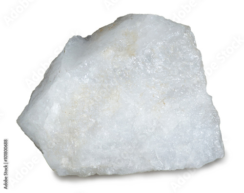 Mineral quartz isolated on white. Quartz is the second most abundant mineral in the Earth's continental crust, after feldspar. Quartz crystals have piezoelectric properties.