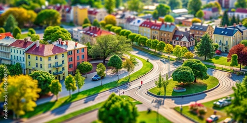 miniature, city landscape, city, building, park, green, tree, road, town, landscape, architecture, urban, photo, model, toy, diorama, small, colourful, vibrant, sunny, day, hi-res, detailed, texture, fantasy, whimsical, idylli, peaceful, calm, relaxing, background, image, photo, illustration, digital artwork, artwork, design, graphic, element, scene, view, perspective