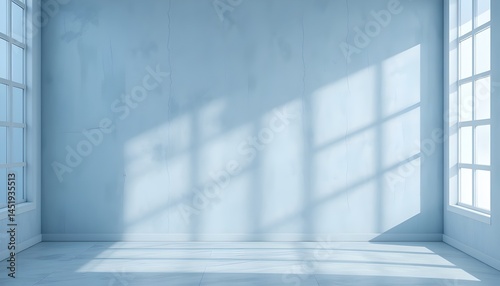 Minimal Abstract Light Blue Background with Shadows and Light from Windows for Product Presentation