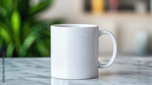 Minimal coffee concept. A blank white mug on a marble surface, ideal for branding or creative designs.