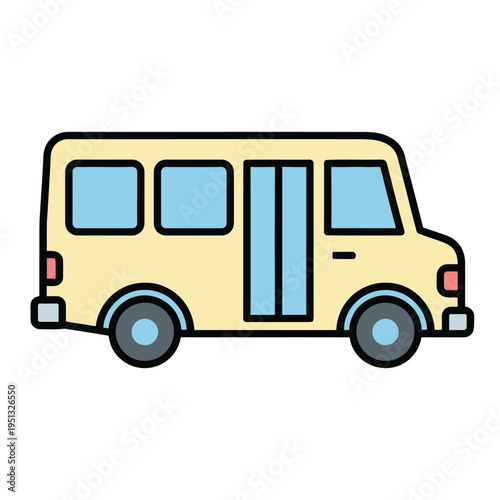 Minimal flat illustration of a minibus, representing public transportation and urban commuting.