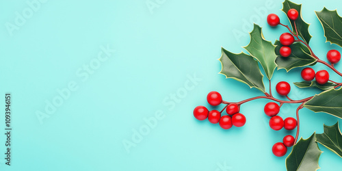 christmas, holiday, christmas background, cyan, festive, background, decor, simple, serene, soft, berry, holly, decoration, leaf, christmas, tree branch, green, celebration, berry, fruit, illustration, plant, season, design, food