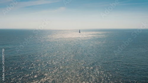 “Minimal ocean landscape with sailboat, peaceful ocean view with sailboat, ocean horizon with sailboat and tranquil sea”