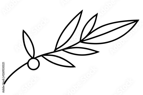 Minimal Outline of Olive Branch for Mediterranean Design - SVG