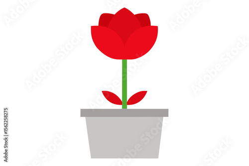 red, flower, pot, leaf, plant, bloom, stem, icon, flat, art, rose, vase, decor, cute, green, shape, simple, design, indoor, home, sweet, small, seed, botany, garden, growth, cartoon, fresh, clean, minimal, dirtied, soft, nature, draw, modern, stylish, short, lovely