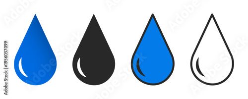 Minimal Water drop icon set, Water or rain drops, Blood or oil drop symbol set Flat and outline style Vector stock illustration