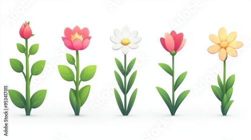 Minimalist 2D Icon Set: Seed to Bloom – Creative Illustrations of Flower Growth Stages