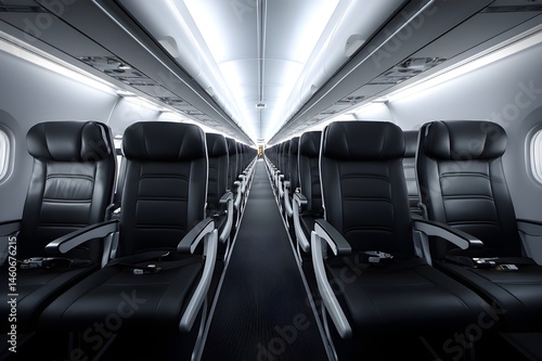 Minimalist airplane interior with neat rows of seats showcasing a modern travel design