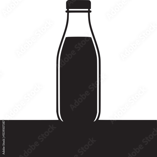 bottle, liquid, dark, minimalist, illustration, black, white, surface, filled, container, design, graphic, simple, modern, clean, shape, art, background, object, beverage, still life, modern art, graphic design, white background, black background