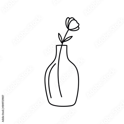 Minimalist Black and White Line Drawing of a Single Flower in a Vase Elegant and Simple Artistic