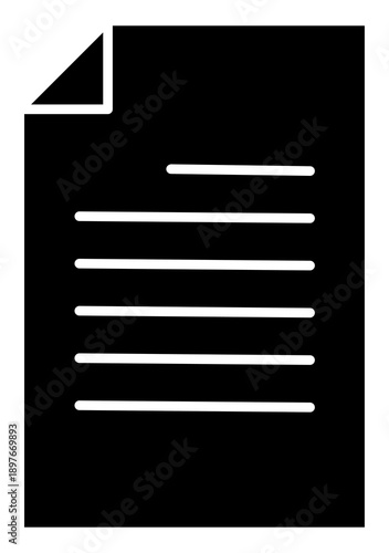 Minimalist black document icon with a folded corner and white text lines. Ideal for business presentations, office apps, digital file management, and professional documentation concepts.