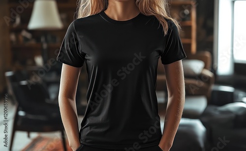 Minimalist Black T-shirt with Soft Diffused Lighting and Artistic Composition