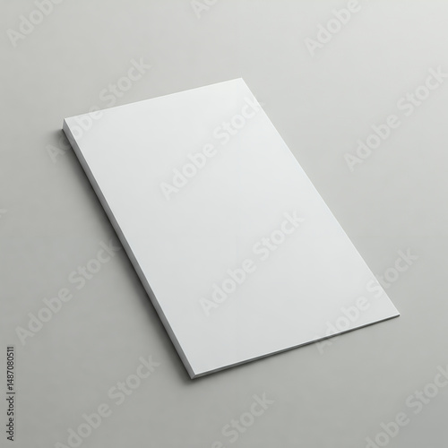Minimalist blank white paper product mockup template on a neutral gray surface. Ideal for magazine, brochure, flyer cover design presentation.