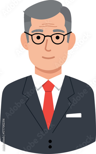 businessman, business, man, male, adult, person, professional, suit, attaching, red, goggles, icon, vector, illustration, flat, design, minimalist, isolated, white, background, portrait, head shot, office, work, career, corporate, executive, manager, leader, photogenic, grey, hair, senior, older, smart, confident, style, fashion, clothing, attire, formal, wear, simple, clean, graphic, element, character, clip, art