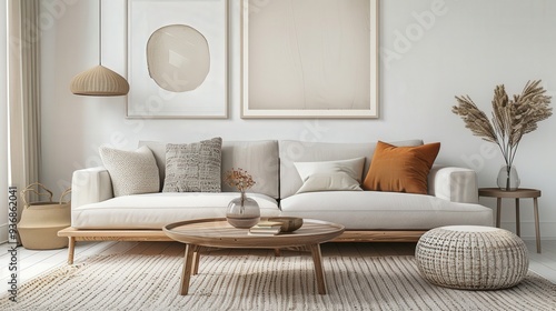 Minimalist Chic Living Room with Stylish Sofa and Clean Design