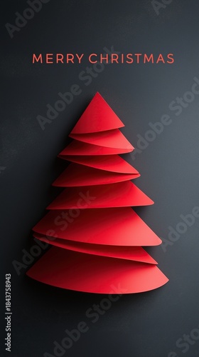 christmas, card, design, minimalist, red, paper, cut-out, tree, merry, text, dark, background, festive, holiday, simple, elegant, modern, graphic, concept, artistic, pattern, illustration, greeting, decorative, season, celebration, christmas, decoration, winter, new, year, green, origami, fir, pine, christmas tree, star, december, art