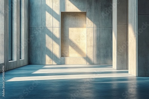 Minimalist Concrete Architecture Interior with Sunlight and Shadows