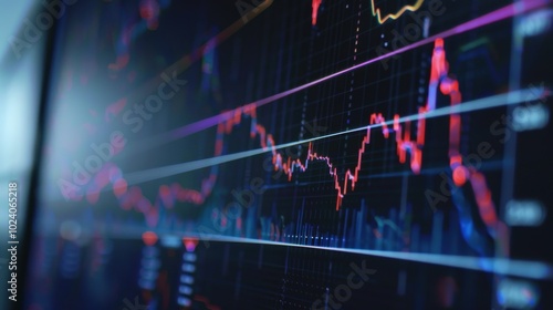 Minimalist Data Visualization on Computer Screen, showcasing sleek lines of a chart in a modern workspace setting