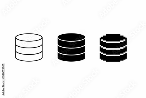 database, icon, minimalist, outline, solid, pixelated, cylindrical, design, black, white, collection, visual, style, datum, storage, symbol, technology, simple, set, graphic, digital, interface, comparison, contrast, artistic, representation, modern, illustration, iconic, pattern, clean, concept, vector, icon