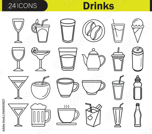 Minimalist Drinks Icon Set 24 Outline Beverage Vector Illustrations for Cafe, Bar, Restaurant, and Menu Design