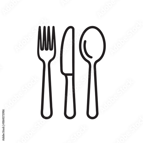 cutlery, fork, knife, spoon, icon, line, drawing, illustration, minimalist, modern, simple, clean, design, graphic, art, vector, isolated, transparent, background, utensil, kitchen, dining, eating, food, set, arrangement, vertical, row, left, right, smooth, emblem, logotype, element, symbol, flat, abstract, black, white, monochrome, outline, contour, shape, style, creative, digital, clip art, vectorial, editing