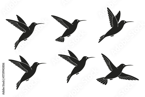 hummingbird, icon, set, minimalist, modern, design, graphic, illustration, bird, wildlife, nature, animal, vector, clip art, symbol, outline, simple, clean, black, yellow, cyan, magenta, digital, print, app, web, logotype, iconography, drawing, art