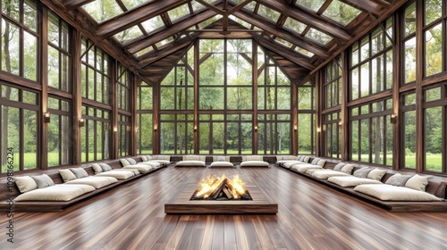 Minimalist Japanese living room with wooden furniture and natural elements for a serene vibe