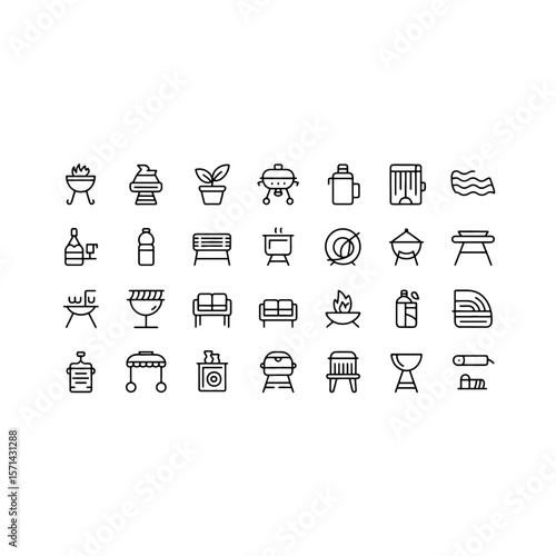 Minimalist Line Art BBQ and Outdoor Living Icons Set.