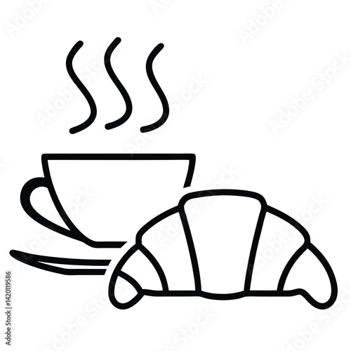 Minimalist Line Art Coffee Cup & Croissant Icon With Transparent Background