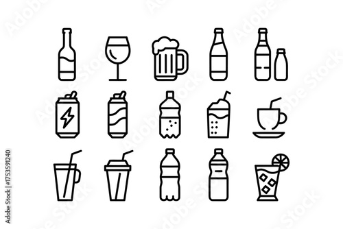 drink, icon, beverage, set, collection, symbol, graphic, line, art, outline, minimalist, simple, pack, food, illustration, iconography, design, element, digital, clean, modern