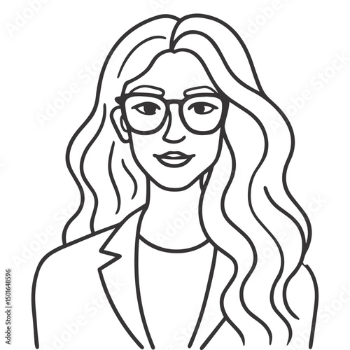 Minimalist Line Art Portrait of Woman with Glasses and Flowing Hair