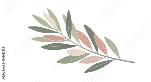 Minimalist Olive Branch Illustration with Pastel Colored Leaves.
