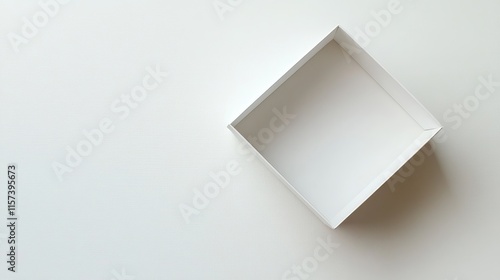 Minimalist open white box on a clean white surface showcasing simplicity and potential for creative presentations and designs