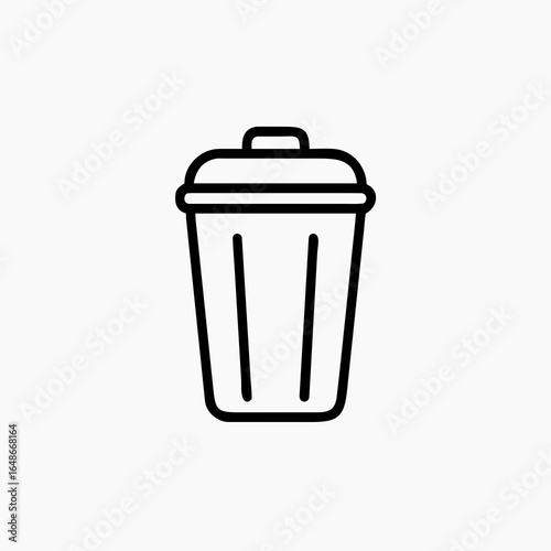 bin, garbage, waste, container, rubbish, litter, disposal, reusing, delete, remove, clean, hygiene, icon, symbol, graphic, design, vector, illustration, simple, line art, outline, black-and-white, isolated, white background, empty, receptacle
