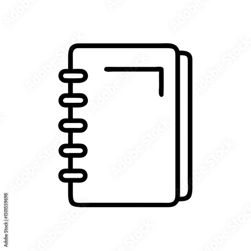 notebook, binder, ring binder, school, education, stationery, office, paper, note, spiral, document, diary, book, notepad, planner, schedule, organiser, learning, writing, study, textbook, journal, record, list, reminder, appointment, memo, agenda, blank, page, cover, minimal, outline, line art, icon, graphic, clip art, illustration, drawing, design, single line, simple, monochrome, black-and-white, object, element, isolated, signs, symbol