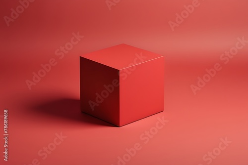 Minimalist Red Color 3D Cube in Memphis Style , Red Color Room With 3D Cube