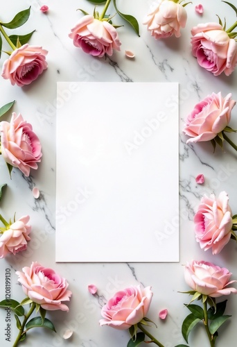Minimalist rose frame on white