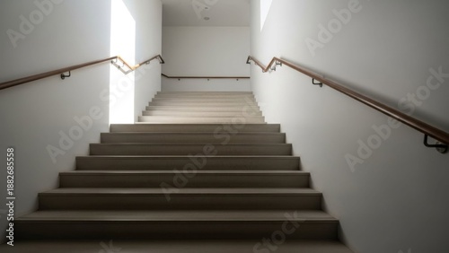 staircase, stair, modern, architecture, interior, design, minimalist, light, bright, ascent, upward, progress, opportunity, clean, white, wall, empty, nobody, hallway, passage, building, structure, step, stone, concrete, wood, balustrade, banister, perspective, geometric, symmetric, linear, journey, future, hope, concept, indoor, residential, commercial, line, architectural, detail, natural, shadow, contrast, movement, photo, serene, calm