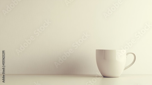 Minimalist still life, a study in white with cup and table