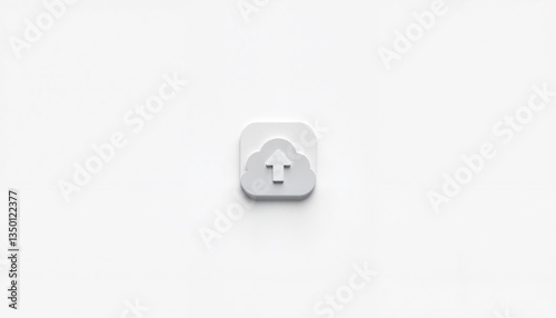 Minimalist upload icon with cloud design on white background, digital art