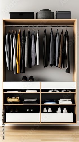 Minimalist wardrobe, organized and stylish, 3D illustration