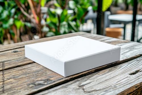 Minimalist White Box on Wooden Table with Soft Light for Branding and Packaging Concepts