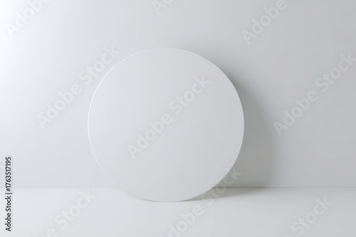 Minimalist white circle on a white background with soft lighting and shadow clean