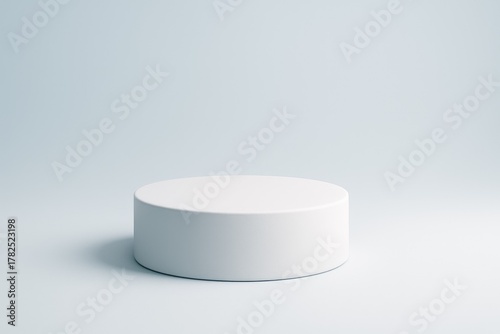 dais, cylinder, white, minimalist, studio, presentation, platform, stage, pedestal, geometric, clean, simple, modern, empty, isolated, background, soft, shadow, light, gradient, blue, light blue, light grey, light background, object, shape, form, three-dimensional, render, advertising, promotion, showcase, display, blank, surface, footed, round, minimal, subtile, studio shot
