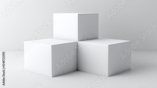 Minimalist White Geometric Pedestal Display Stand with Three Blocks for Product Showcase and Modern Interior Design Decoration